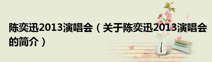 本文關(guān)于陳奕迅2013演唱會(huì)的簡(jiǎn)介就講解完畢,希望對(duì)大家有所幫助。