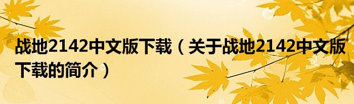本文關于戰地2142中文版下載的簡介就講解完畢,希望對大家有所幫助。