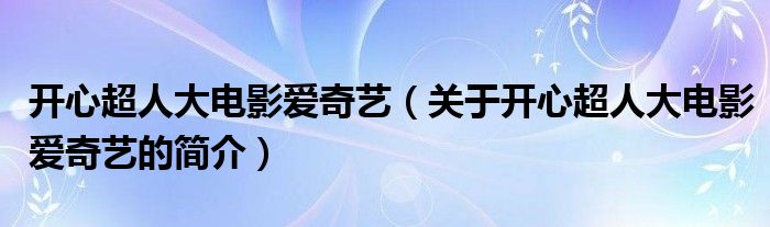 本文關(guān)于開(kāi)心超人大電影愛(ài)奇藝的簡(jiǎn)介就講解完畢,希望對(duì)大家有所幫助。