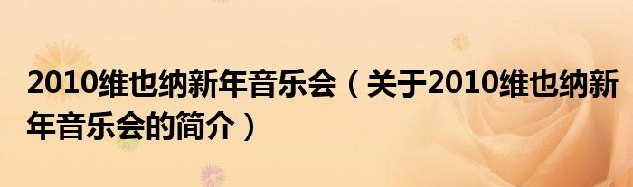 本文關于2010維也納新年音樂會的簡介就講解完畢,希望對大家有所幫助。