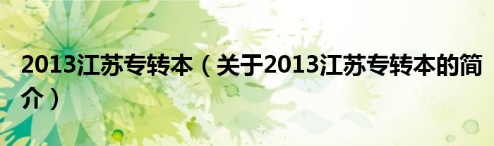 大家好,2013江蘇專轉本,關于2013江蘇專轉本的簡介很多人還不知道,現在讓我們一起來看看吧!