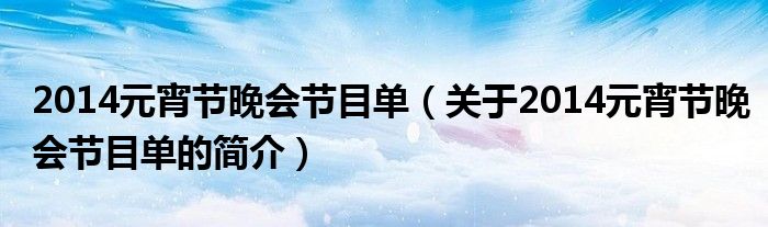 本文關于2014元宵節晚會節目單的簡介就講解完畢,希望對大家有所幫助。