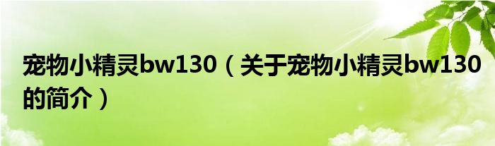 本文關于寵物小精靈bw130的簡介就講解完畢,希望對大家有所幫助。