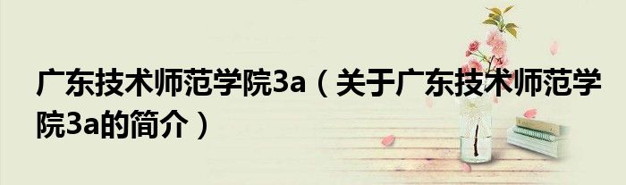 本文關于廣東技術師范學院3a的簡介就講解完畢,希望對大家有所幫助。
