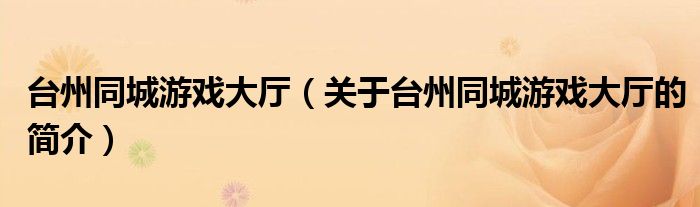 本文關(guān)于臺(tái)州同城游戲大廳的簡(jiǎn)介就講解完畢,希望對(duì)大家有所幫助。