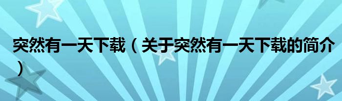 本文關(guān)于突然有一天下載的簡(jiǎn)介就講解完畢,希望對(duì)大家有所幫助。