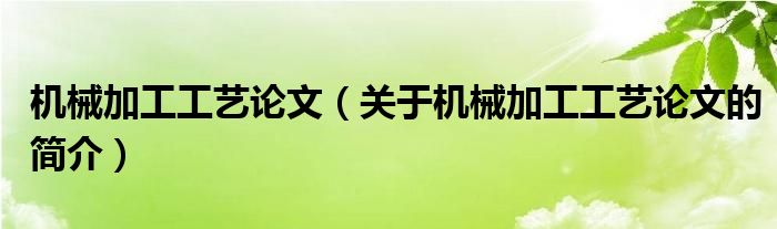 本文關(guān)于機(jī)械加工工藝論文的簡(jiǎn)介就講解完畢,希望對(duì)大家有所幫助。