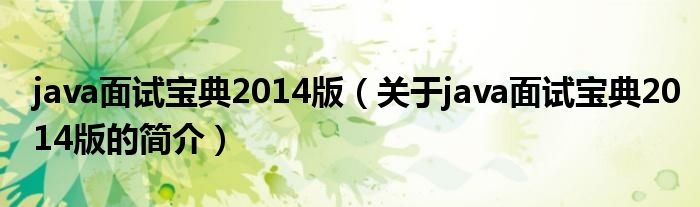 本文關于java面試寶典2014版的簡介就講解完畢,希望對大家有所幫助。