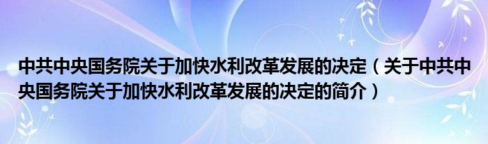 本文關于中共中央國務院關于加快水利改革發展的決定的簡介就講解完畢,希望對大家有所幫助。
