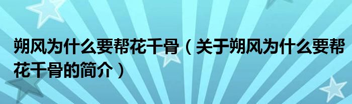 本文關于朔風為什么要幫花千骨的簡介就講解完畢,希望對大家有所幫助。