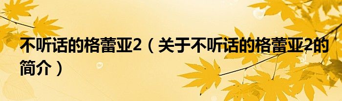 大家好,不聽話的格蕾亞2,關于不聽話的格蕾亞2的簡介很多人還不知道,現在讓我們一起來看看吧!