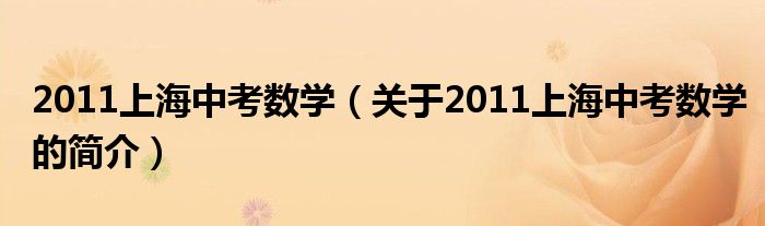 本文關于2011上海中考數學的簡介就講解完畢,希望對大家有所幫助。