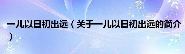 大家好,一兒以日初出遠,關于一兒以日初出遠的簡介很多人還不知道,現在讓我們一起來看看吧!