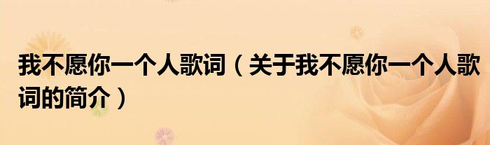 本文關于我不愿你一個人歌詞的簡介就講解完畢,希望對大家有所幫助。