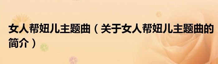 本文關于女人幫妞兒主題曲的簡介就講解完畢,希望對大家有所幫助。
