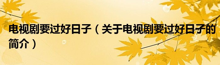 本文關(guān)于電視劇要過好日子的簡(jiǎn)介就講解完畢,希望對(duì)大家有所幫助。