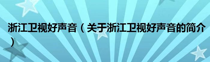 本文關(guān)于浙江衛(wèi)視好聲音的簡介就講解完畢,希望對大家有所幫助。