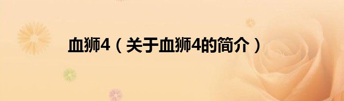 大家好,血獅4,關(guān)于血獅4的簡介很多人還不知道,現(xiàn)在讓我們一起來看看吧!