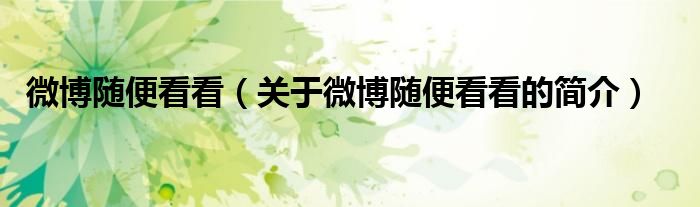 本文關于微博隨便看看的簡介就講解完畢,希望對大家有所幫助。