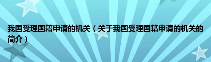 本文關(guān)于我國(guó)受理國(guó)籍申請(qǐng)的機(jī)關(guān)的簡(jiǎn)介就講解完畢,希望對(duì)大家有所幫助。