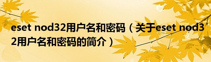 本文關(guān)于eset nod32用戶名和密碼的簡介就講解完畢,希望對(duì)大家有所幫助。