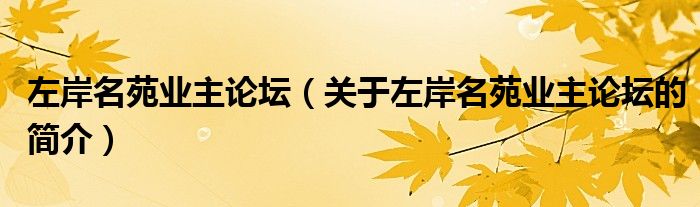 本文關(guān)于左岸名苑業(yè)主論壇的簡介就講解完畢,希望對大家有所幫助。