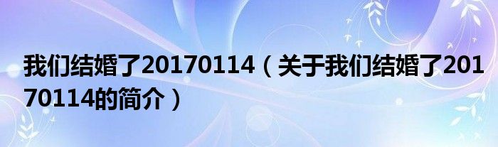 大家好,我們結婚了20170114,關于我們結婚了20170114的簡介很多人還不知道,現在讓我們一起來看看吧!