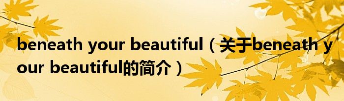 大家好,beneath your beautiful,關于beneath your beautiful的簡介很多人還不知道,現(xiàn)在讓我們一起來看看吧!