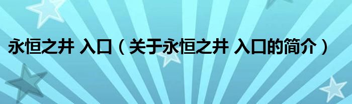 本文關于永恒之井 入口的簡介就講解完畢,希望對大家有所幫助。