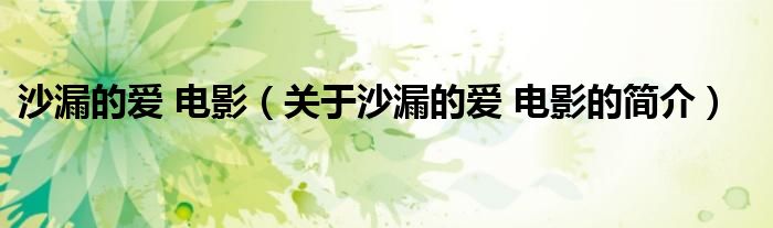 本文關于沙漏的愛 電影的簡介就講解完畢,希望對大家有所幫助。