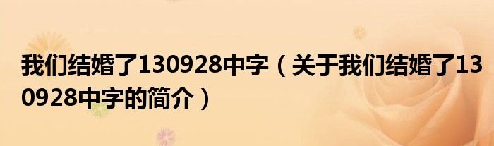 大家好,我們結婚了130928中字,關于我們結婚了130928中字的簡介很多人還不知道,現在讓我們一起來看看吧!