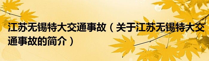 本文關于江蘇無錫特大交通事故的簡介就講解完畢,希望對大家有所幫助。