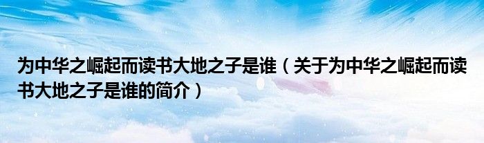 大家好,為中華之崛起而讀書大地之子是誰,關于為中華之崛起而讀書大地之子是誰的簡介很多人還不知道,現在讓我們一起來看看吧!