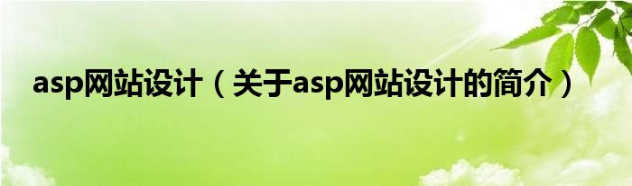 本文關于asp網站設計的簡介就講解完畢,希望對大家有所幫助。