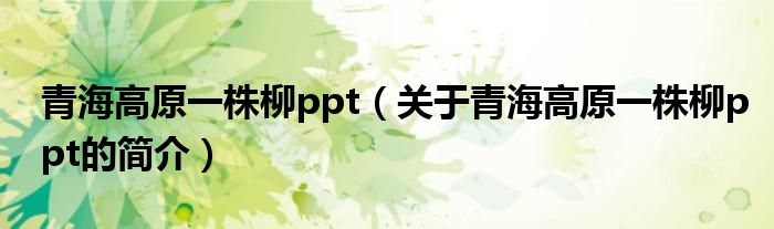 本文關于青海高原一株柳ppt的簡介就講解完畢,希望對大家有所幫助。