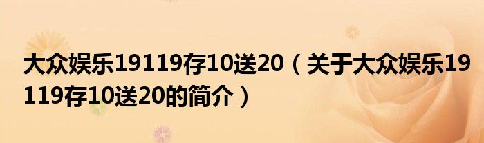 本文關于大眾娛樂19119存10送20的簡介就講解完畢,希望對大家有所幫助。