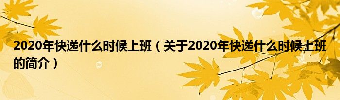 本文關于2020年快遞什么時候上班的簡介就講解完畢,希望對大家有所幫助。