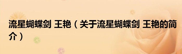 本文關于流星蝴蝶劍 王艷的簡介就講解完畢,希望對大家有所幫助。