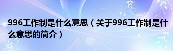 本文關(guān)于996工作制是什么意思的簡(jiǎn)介就講解完畢,希望對(duì)大家有所幫助。
