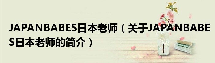 本文關于JAPANBABES日本老師的簡介就講解完畢,希望對大家有所幫助。