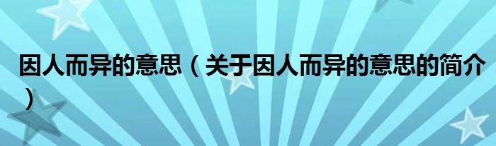 本文關于因人而異的意思的簡介就講解完畢,希望對大家有所幫助。