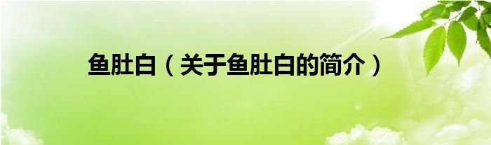本文關(guān)于魚肚白的簡(jiǎn)介就講解完畢,希望對(duì)大家有所幫助。