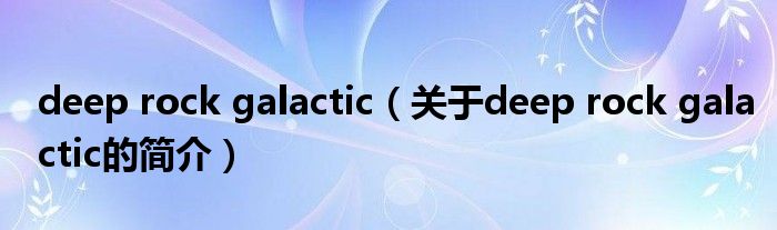 本文關(guān)于deep rock galactic的簡(jiǎn)介就講解完畢,希望對(duì)大家有所幫助。