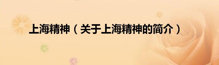 大家好,上海精神,關于上海精神的簡介很多人還不知道,現在讓我們一起來看看吧!