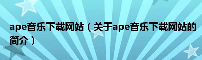 本文關于ape音樂下載網站的簡介就講解完畢,希望對大家有所幫助。