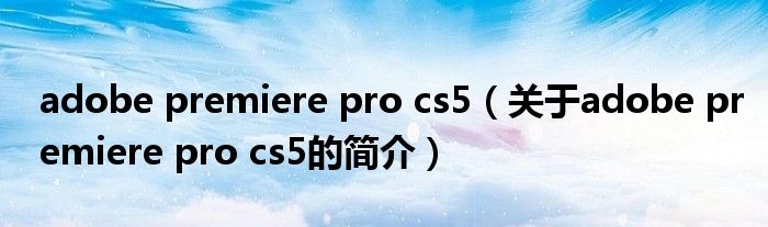 大家好,adobe premiere pro cs5,關于adobe premiere pro cs5的簡介很多人還不知道,現在讓我們一起來看看吧!