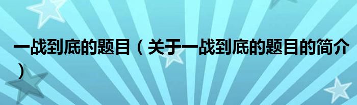 本文關于一戰到底的題目的簡介就講解完畢,希望對大家有所幫助。