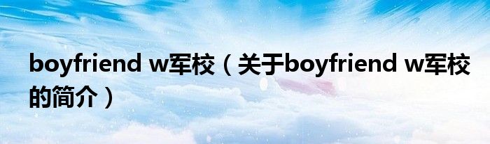 本文關于boyfriend w軍校的簡介就講解完畢,希望對大家有所幫助。
