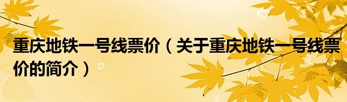 本文關于重慶地鐵一號線票價的簡介就講解完畢,希望對大家有所幫助。