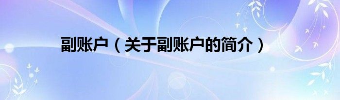 大家好,副賬戶,關于副賬戶的簡介很多人還不知道,現在讓我們一起來看看吧!